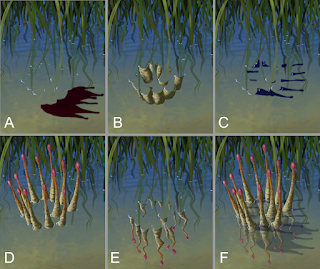 | Opabinia, a Cambrian oddity; copyright Quade Paul; source here |